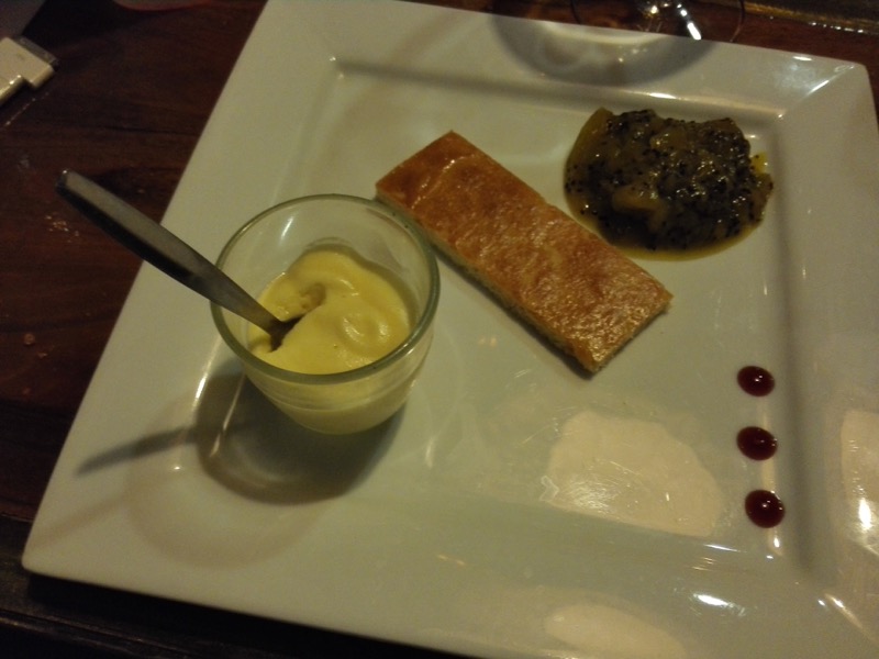 Vins : Un blanc moelleux, puis un blanc pays d’Oc (un peu trop sucré à mon goût).