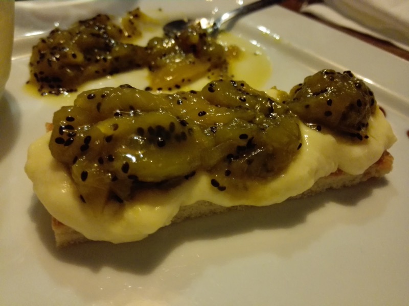 Acte III : Un note à note de galette charentaise, avec une crème légère au pineau blanc et une compotée de kiwi à monter soi-même.