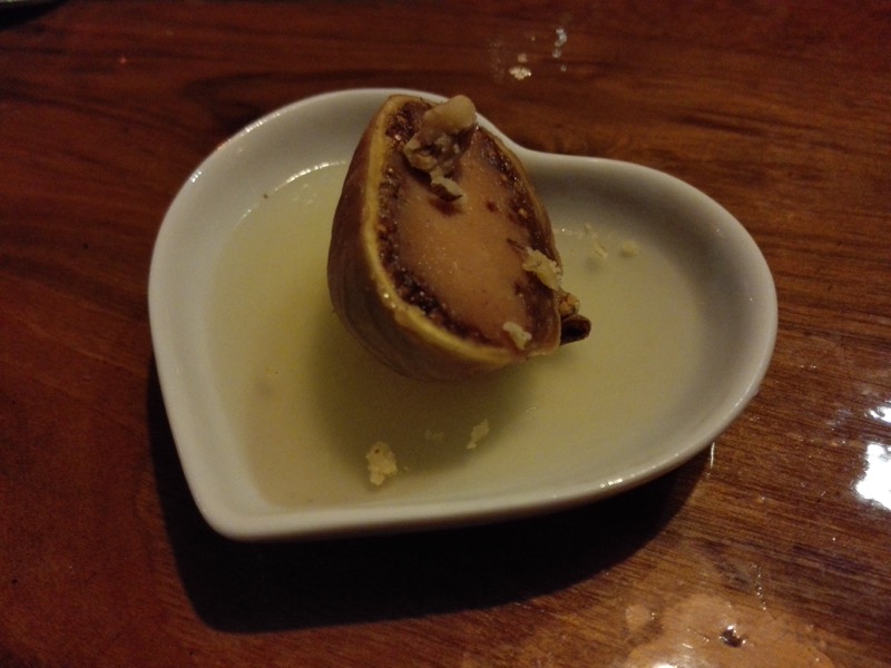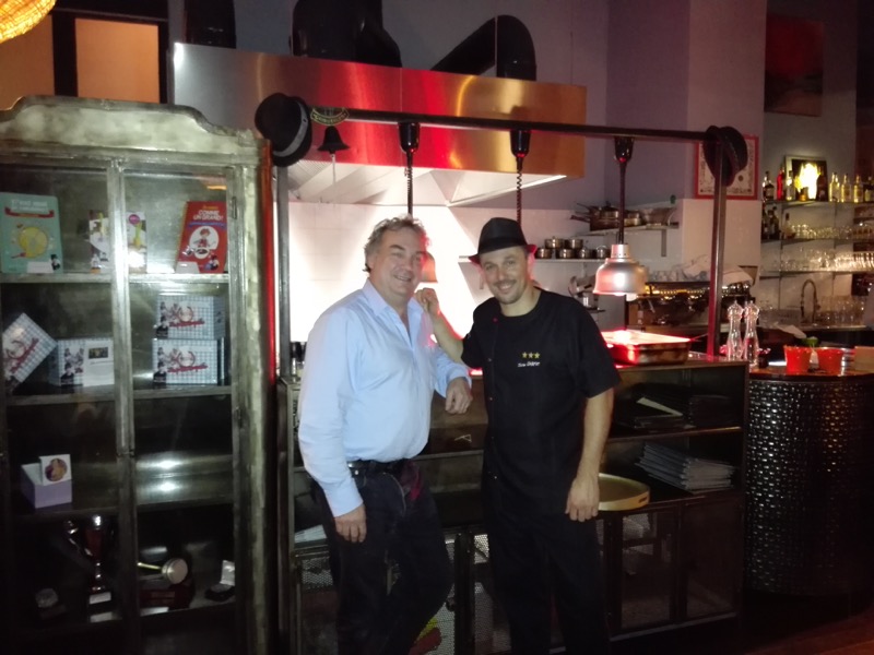 Il est encore possible de faire dans l’original en matière de restauration. C’est en tout cas l’intention du restaurant Show Devant qui a ouvert à Villejuif. Le principe consiste à faire participer les convives à partir d’un thème de cuisine au gré des saisons, sous la forme d’un Cooking Show. Le jour où nous y sommes allés, cela tournait autour de « Terre & Mer (Royan) », un menu affiché à 38 €. L’introduction se fait par une mise en bouche, constituée d’une figue farcie au foie gras de la maison Raix, agrémentée d’une gelée de pineau. Le chef conseille vivement de goûter la gelée en premier, puis de croquer la figue.