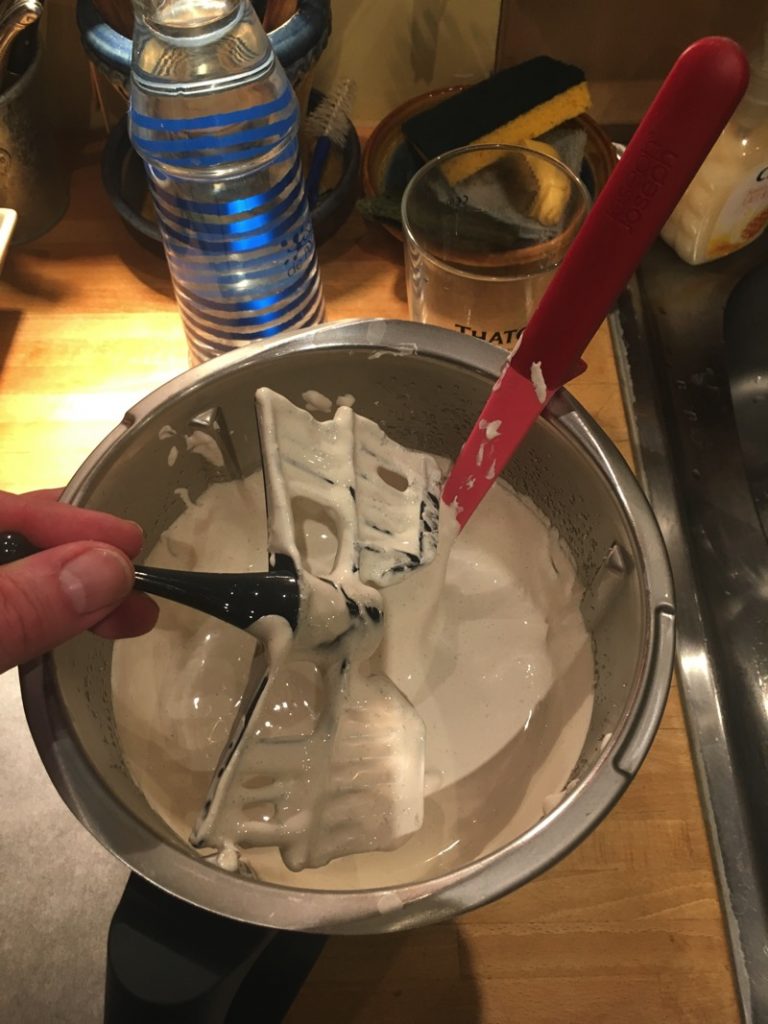 Ayant fait des tagliatelles carbonara la semaine dernière, il me restait 7 blancs d’oeuf, et je déteste jeter (sinon, je peux aussi les conserver quelque temps au congélateur). Donc, avec le sucre en plus, c’est parti pour les meringues, avec la recette ‘Meringue classique‘. J’ai cependant mélangé du sucre blanc et du sucre roux, et aussi ajouté un brin de vanille râpé, afin de colorer et donner une note de goût… résultat, plus de 60 meringues, que tout le monde a trouvé délicieuses. Bon, 2h30 au four à 100¨C, il faut juste être un peu patient…