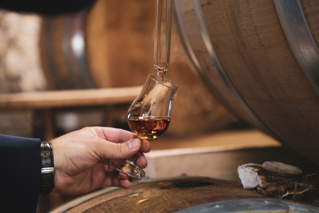 Certes, l’opacité du contenant frustre le dégustateur d’une vision directe de la robe du spiritueux mais elle protège le précieux liquide de la lumière. Il ne reste donc plus qu’à verser le Cognac dans un verre et le mirer avant de déguster.